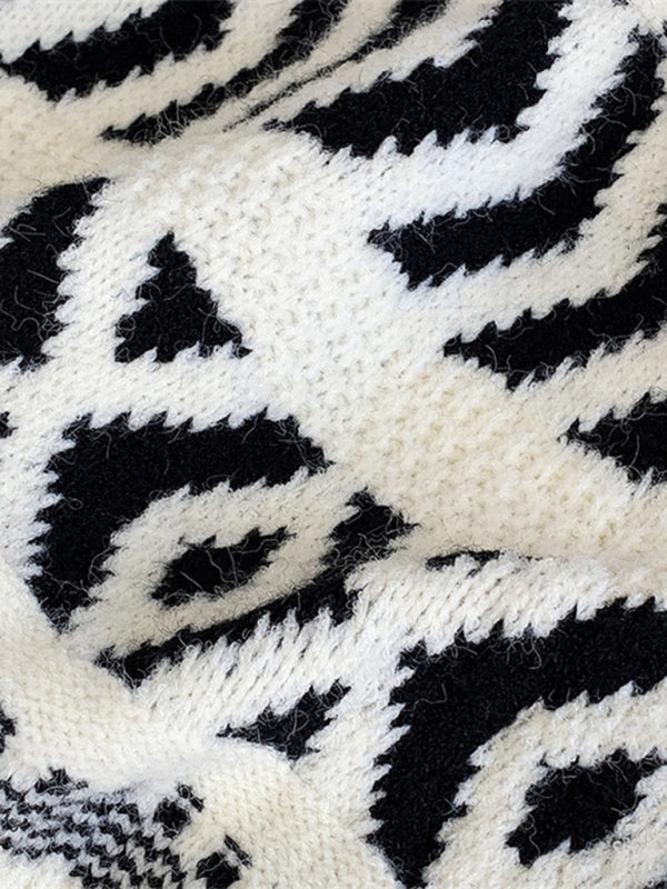 Women's new Christmas and New Year geometric pattern round neck pullover sweater